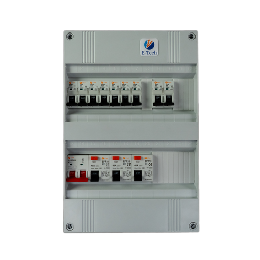 E-tech Groepenkasten B.V.1 fase Groepenkast 9 groepen – Compleet Afgemonteerd & Direct Gebruiksklaar Deze 24-modulen groepenkast is volledig afgemonteerd en bedraad vol...